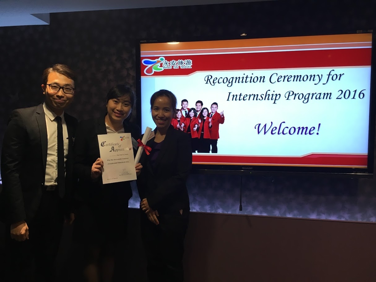 至於立志當領隊的潘翠怡同學則到永安旅遊擔任實習生,主要負責大堂接待及文書工作。她指,在課堂上所學到如國際文化的知識也能應用出來。翠怡說︰「因為每個國家需要注意的事項也不同,旅行社要為客人提供專業意見。」她認為這次實習最大的得著是學懂人與人之間的相處技巧,面對客人會留意用字,而且得到了很多旅遊業的專業知識。