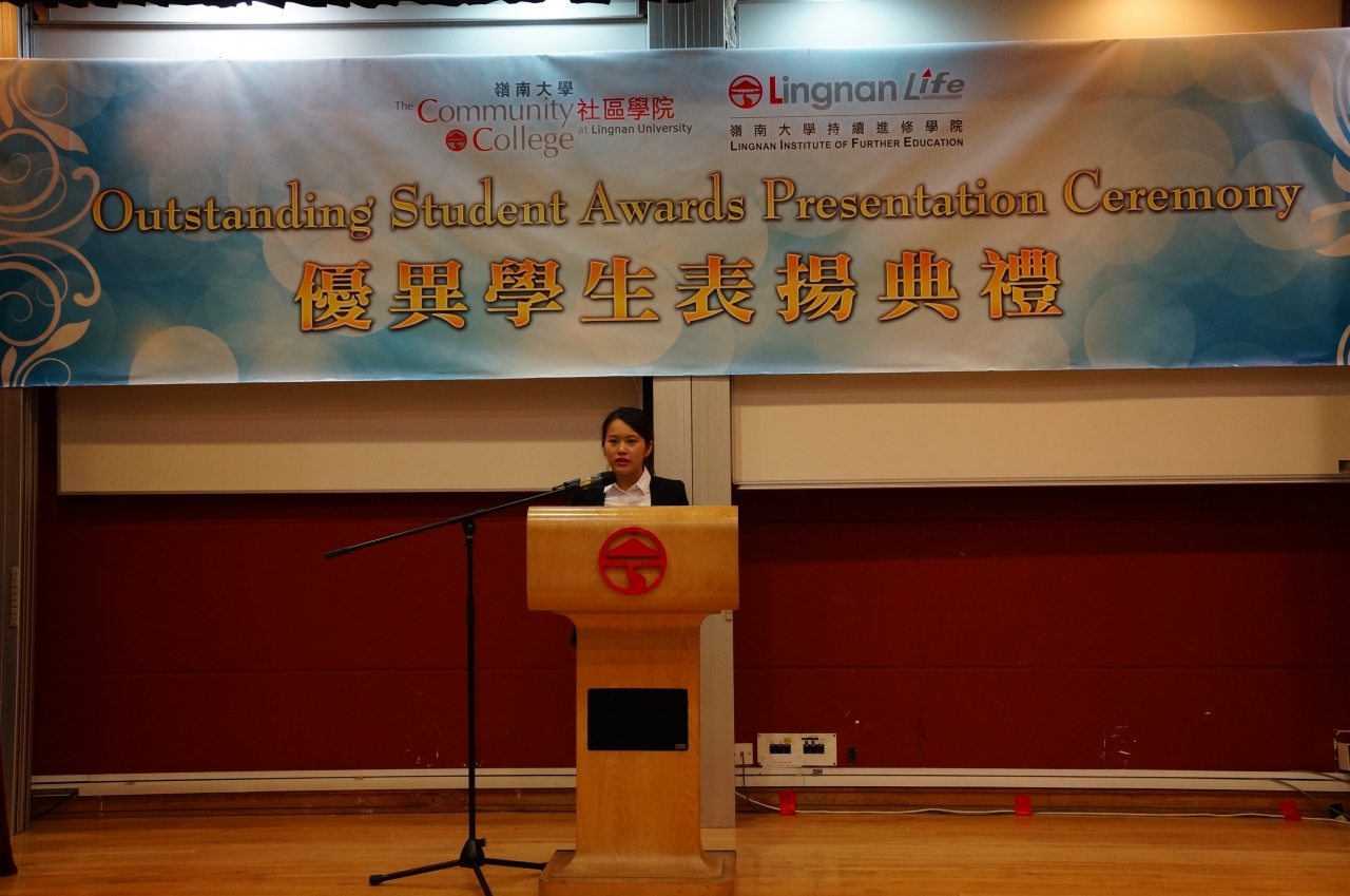 岭南大学持续进修学院(学院)于八月二日假岭南大学王忠秣演讲厅举行优异学生表扬典礼,以表扬副学士、高级文凭、文凭及毅进文凭学生的各项成就。