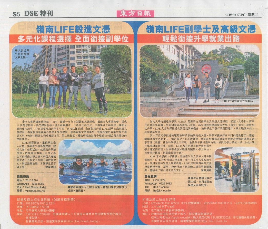 岭南LIFE副学士及高级文凭 轻松衔接升学就业出路