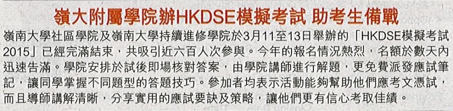 岭大附属学院办HKDSE模拟考试助考生备战