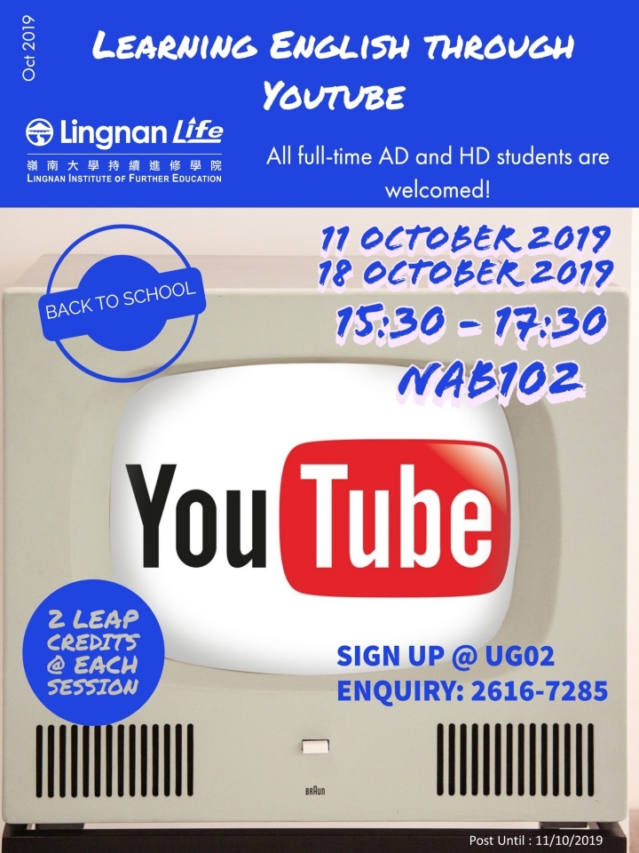 LEP : Learning English Through Youtube (LEAP : 2 units) (額滿)