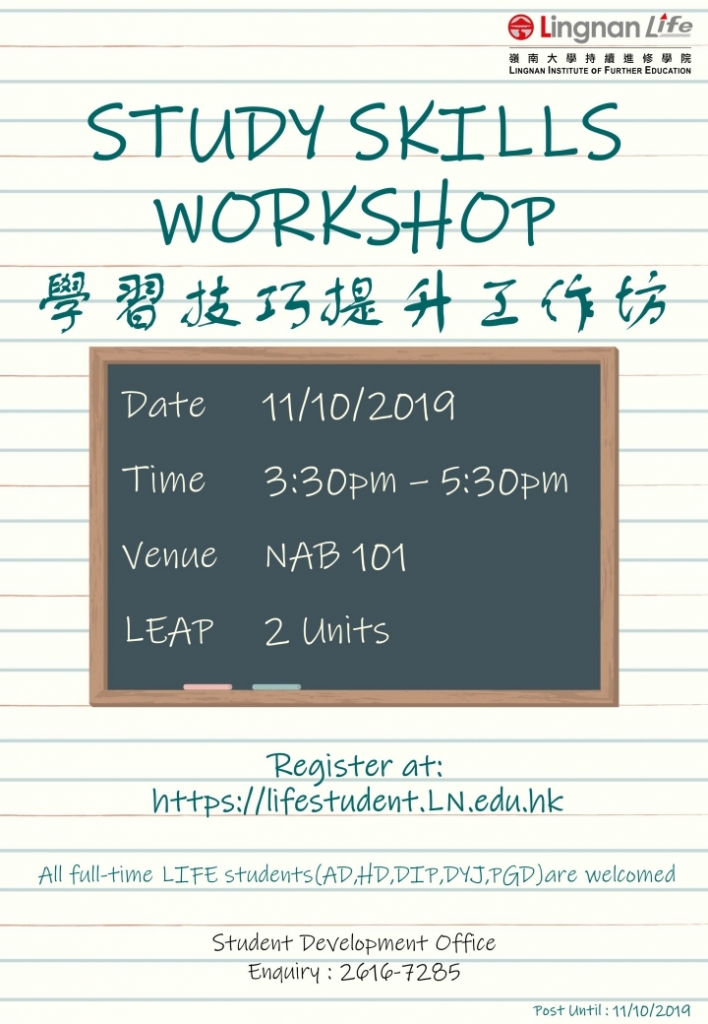 學習技巧提升工作坊 (LEAP : 2 units) (額滿)